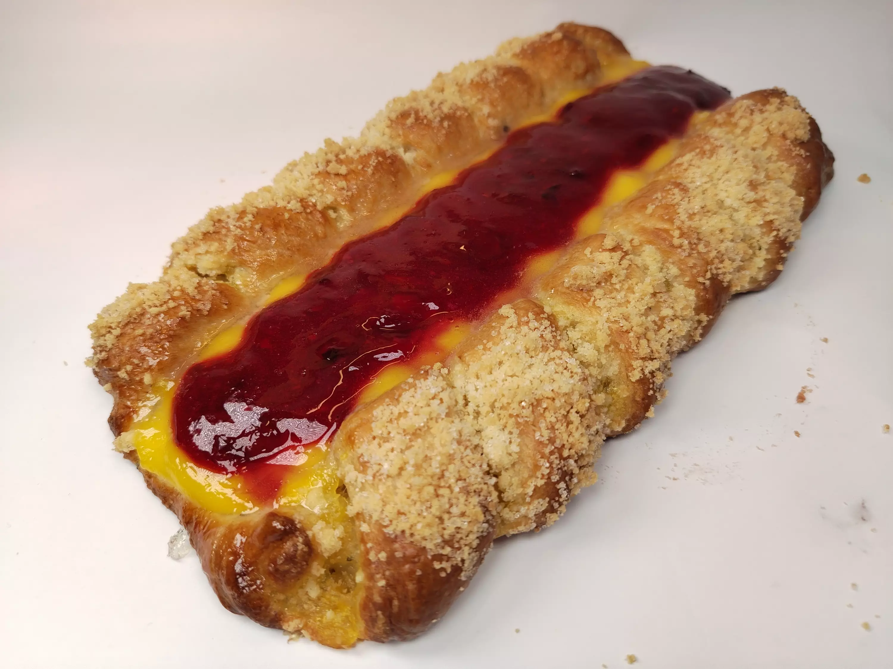Wienertaikinasta leivottu avopitko, jonka päällä sesongin makuja
