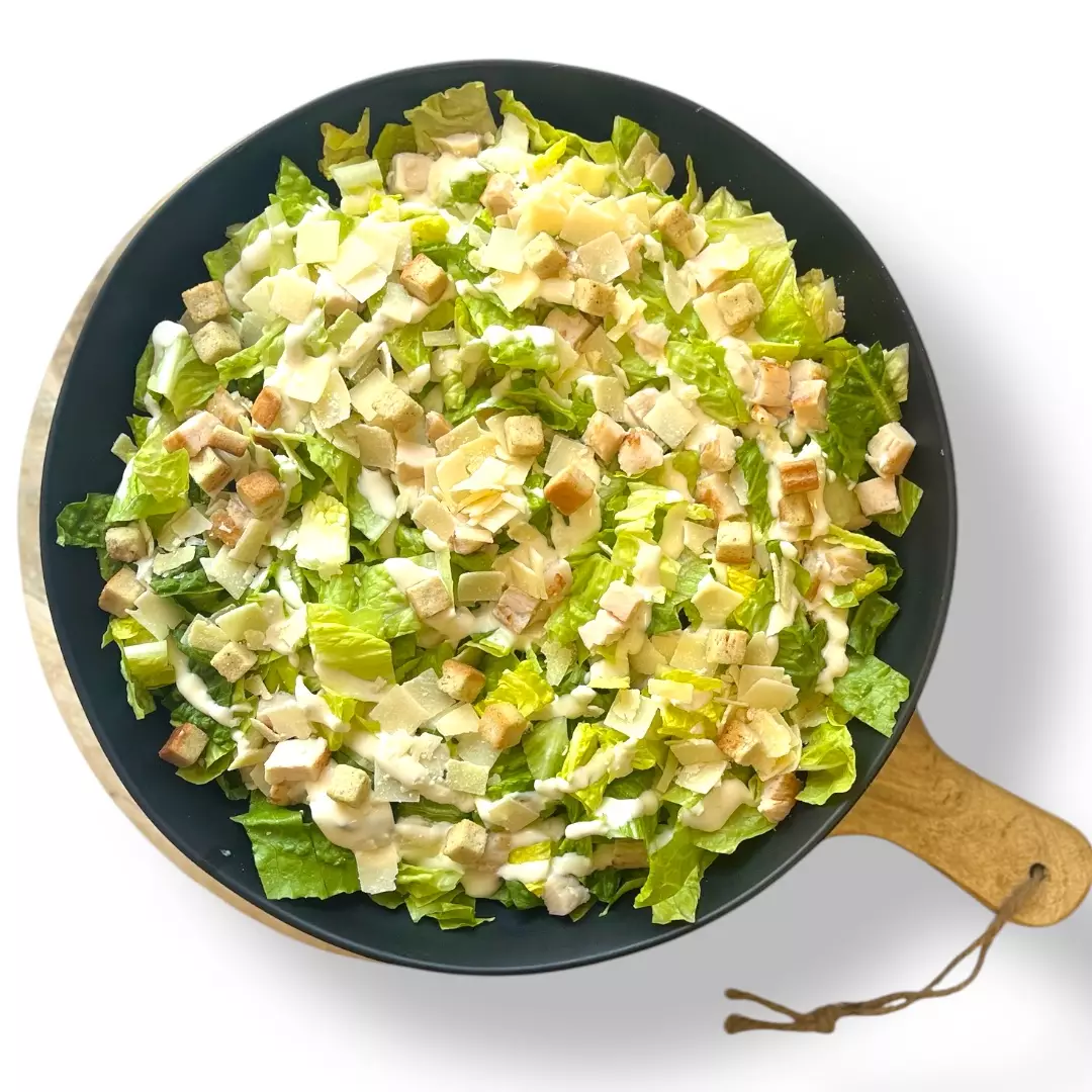 AINESOSAT: Romainesalaatti, broileri, parmesan-juusto (raaka-ja pastöroitu maito,suola, hapete (maito), juoksute), caesar-kastike [rapsiöljy, etikka, sokeri, KANANMUNANKELTUAINEN, jodioitu suola, muuneettu perunatärkkelys, mausteet (sinapinsiemen, valkosipuli, valkopippuri) aromit (maitoproteeni), säilöntäaine (E202), sakeuttamisaine (E415), väri (E160a)], krutongit (VEHNÄjauho, auringonkukkaöljy, VEHNÄgluteeni, suola, sokeri, hiiva, auringonkukkaöljy, mausteet (peruna, maitodekstriini, suola, sipuli, valkosipuli, persilja).