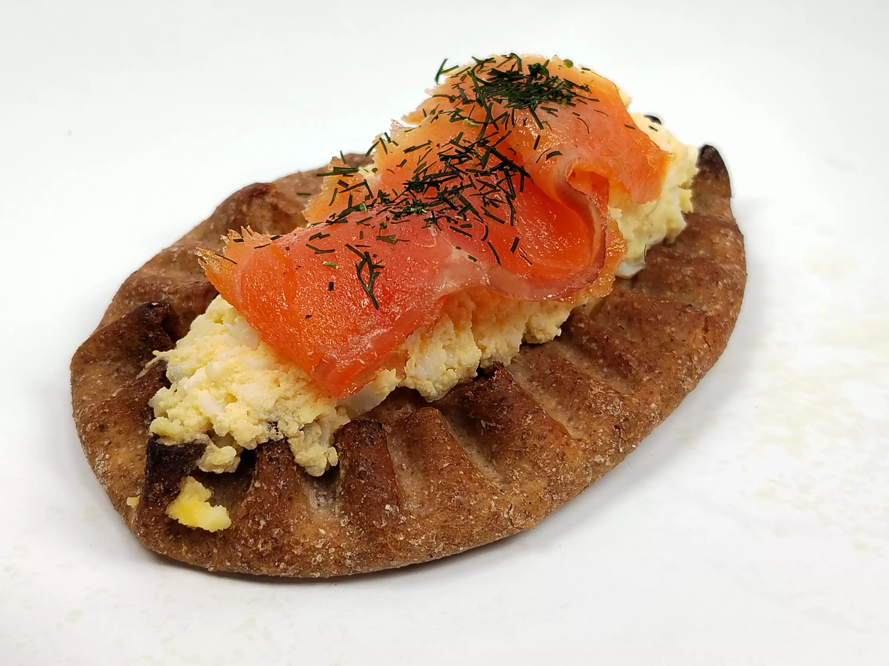 Karjalanpiirakka munavoi-kylmäsavulohi