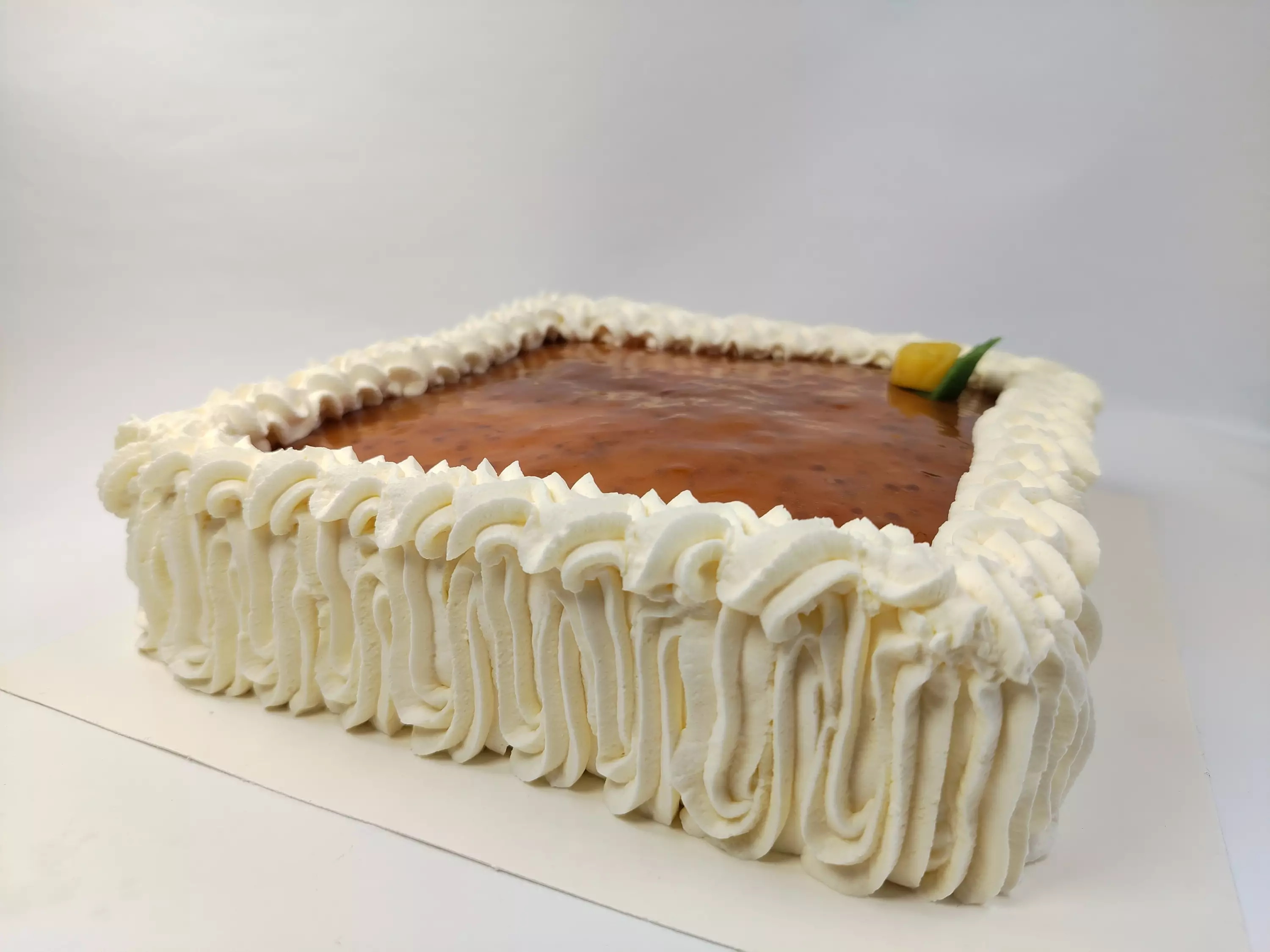 Koristelu: KERMA, lakkahillo, marsipaaniruusu (sokeri, aprikoosinsydän, kasviöljy, VEHNÄtärkkelyssiirappi, kosteudensäilyttäjä: E420, MANTELI, stabilointiaine E401, invertaasi, värit: E160a, E141, E100).