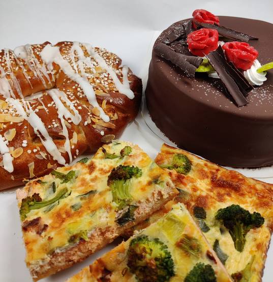 Suolainen piirakka ja omenakranssi ovat laktoosittomia. Suklaakakku ovat vähälaktoosinen.