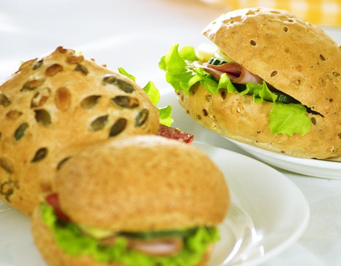 AINESOSAT: Sämpylä: VEHNÄjauho, vesi, kurpitsansiemen, pellavansiemen, maissi, hirssi, RUISjauho, hiiva, kasviöljy, VEHNÄraski, OHRAmallas, jodioitu suola (0,9%), glukoosi, maissijauho, VEHNÄnalkio, amylaasi, emulgointiaine E472e, sokeri, jauhonparanne askorbiinihappo, entsyymi.
