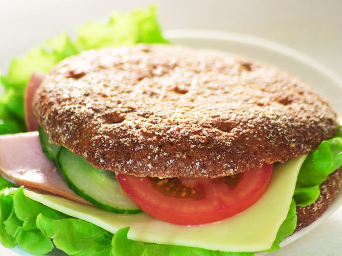 Täyte: Savuhovin kinkku, JUUSTO, salaatti, tomaatti, kurkku, laktoositon Oivariini (VOI, rypsiöljy, vesi, suola, D-vitamiini). Kasvikset voivat vaihdella kauden/sesongin mukaan.