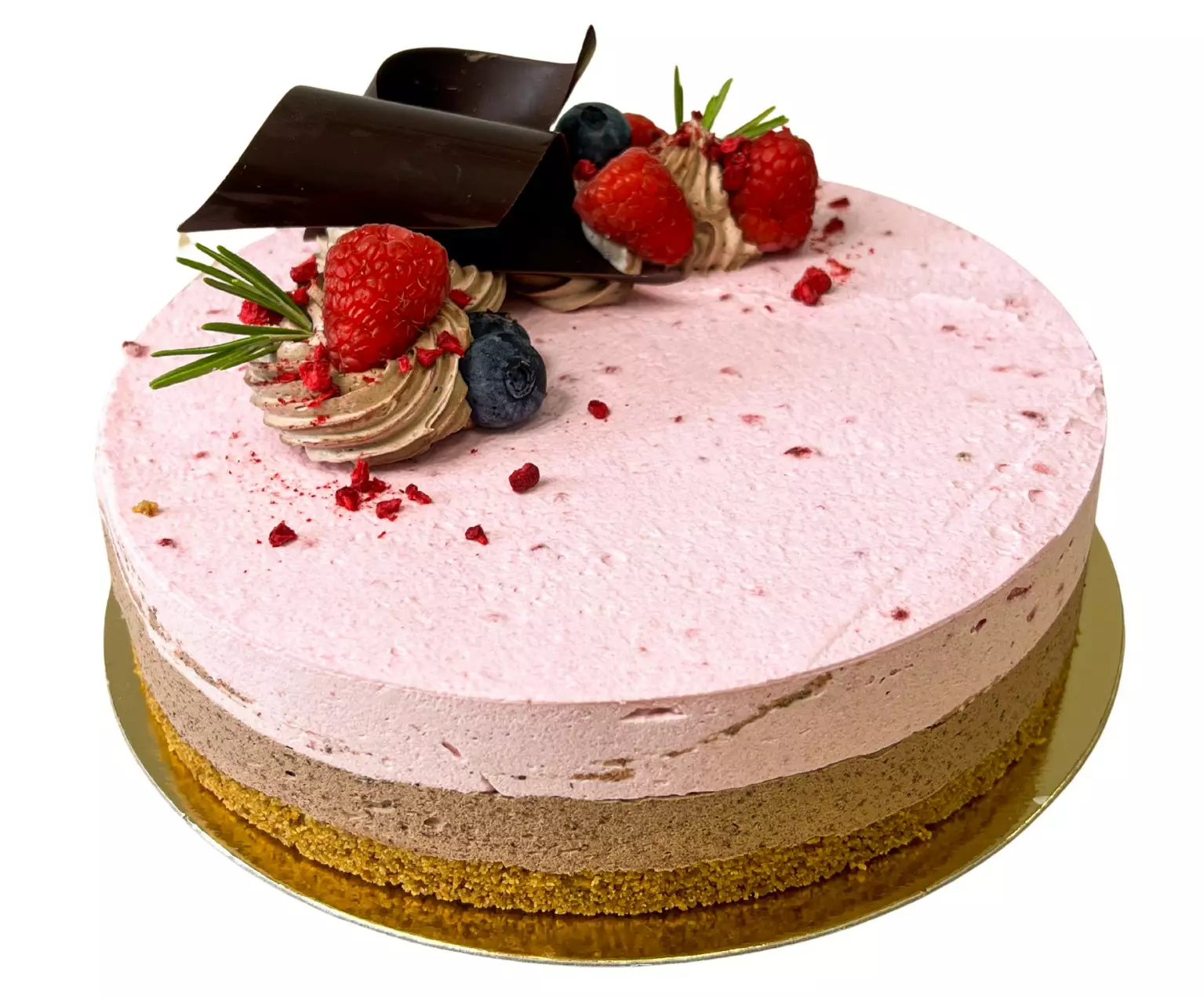 Päällä: vadelmasose (vadelma, vesi, sokeri), kauden hedelmiä, kuumahyytelöintiaine (sokeri, vesi,