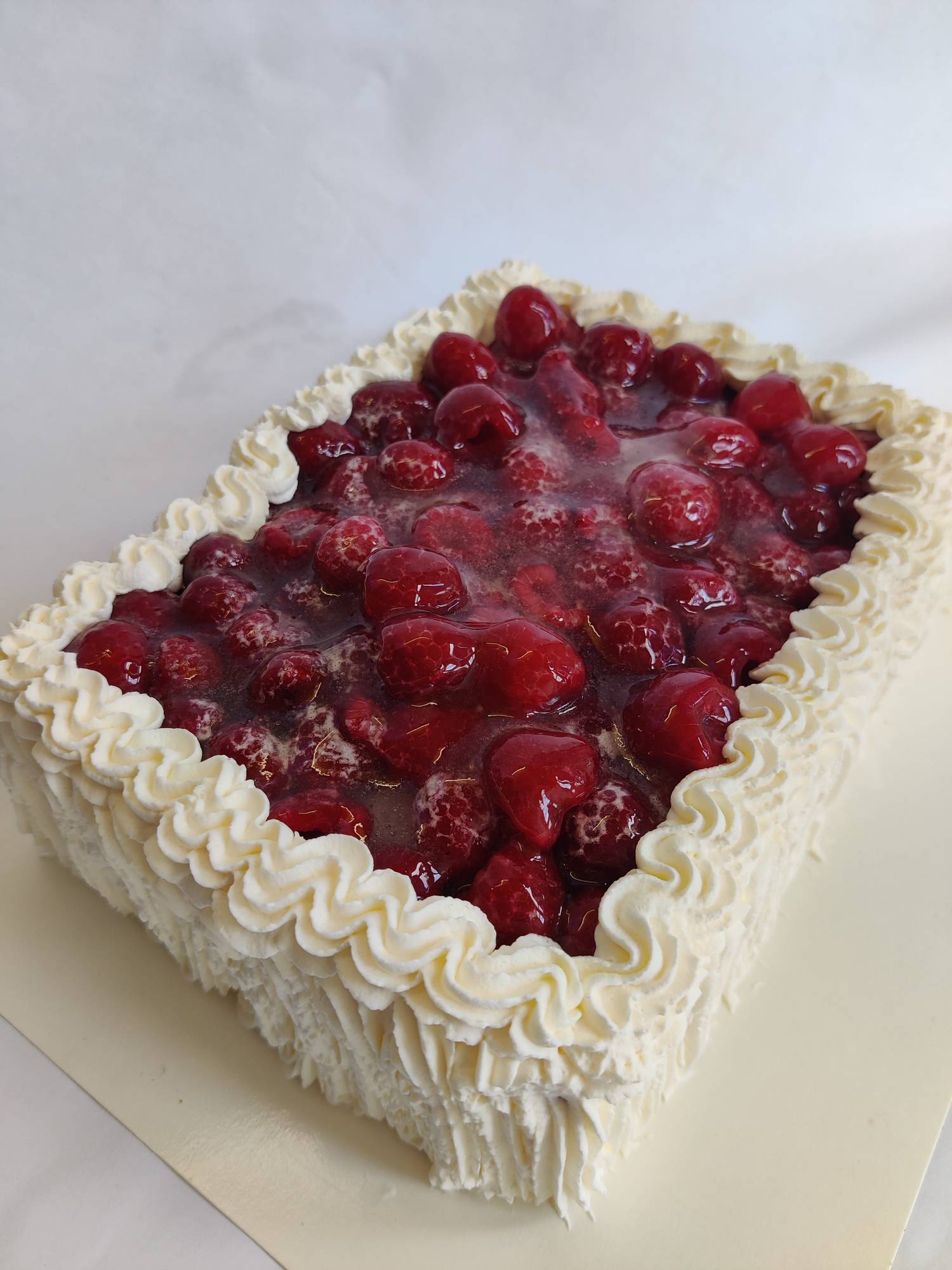 Dekorering: Hallon (Finland), glacyr [vatten, socker, glukossirap, geleringsmedel (E440, E407), surhetsreglerandemedel (E330, E327, E331), konserveringsmedel E202, emulgeringsmedel E322, arom].